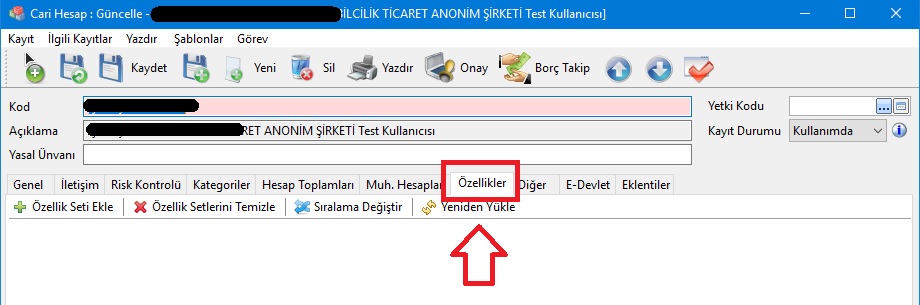 Fakat farklı sektörlere ya da müşterilerimizin ihtiyaçlarına göre bu alanlar da değişmektedir. Değişkenlik gösteren bu özel alanlara göre de yeni alanların eklenmesi mümkündür. Bunun için ilgili kartların üzerinde “Özellikler” diye bir sekme bulunmaktadır.