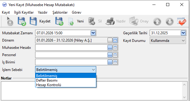 Geçerlilik Tarihi: Mutabakatın hangi tarihe kadar geçerli olacağını belirtir. Bu tarihten sonra oluşturulan kayıtlarda mutabakat uygulanmaz.