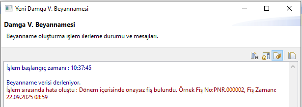 Beyanname oluşturulurken, durumu "Normal" veya "Onaylı" olmayan fişler için sistemin vereceği tepkiyi seçebilirsiniz: