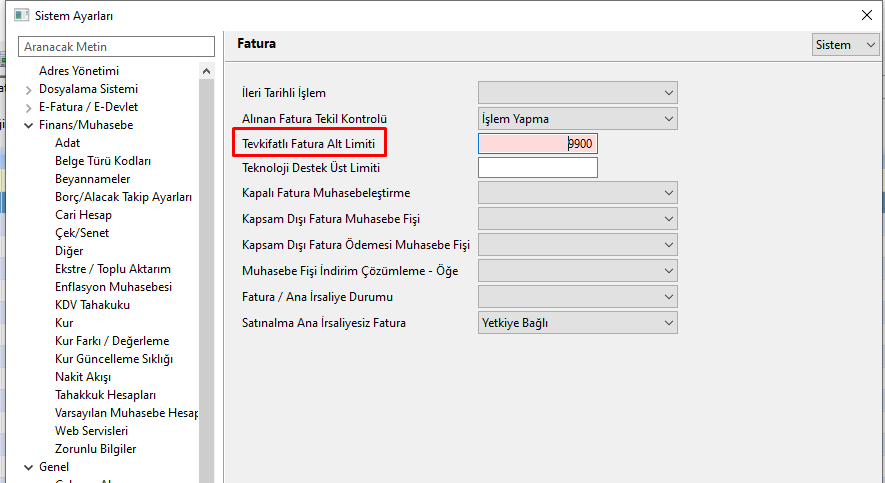 Limit kontrolleri isteğe bağlı olarak kullanılabilir. Bu nedenle hem Tevkifat Kartı içerisine hem de Sistem Ayarlarına yeni parametreler eklenmiştir.