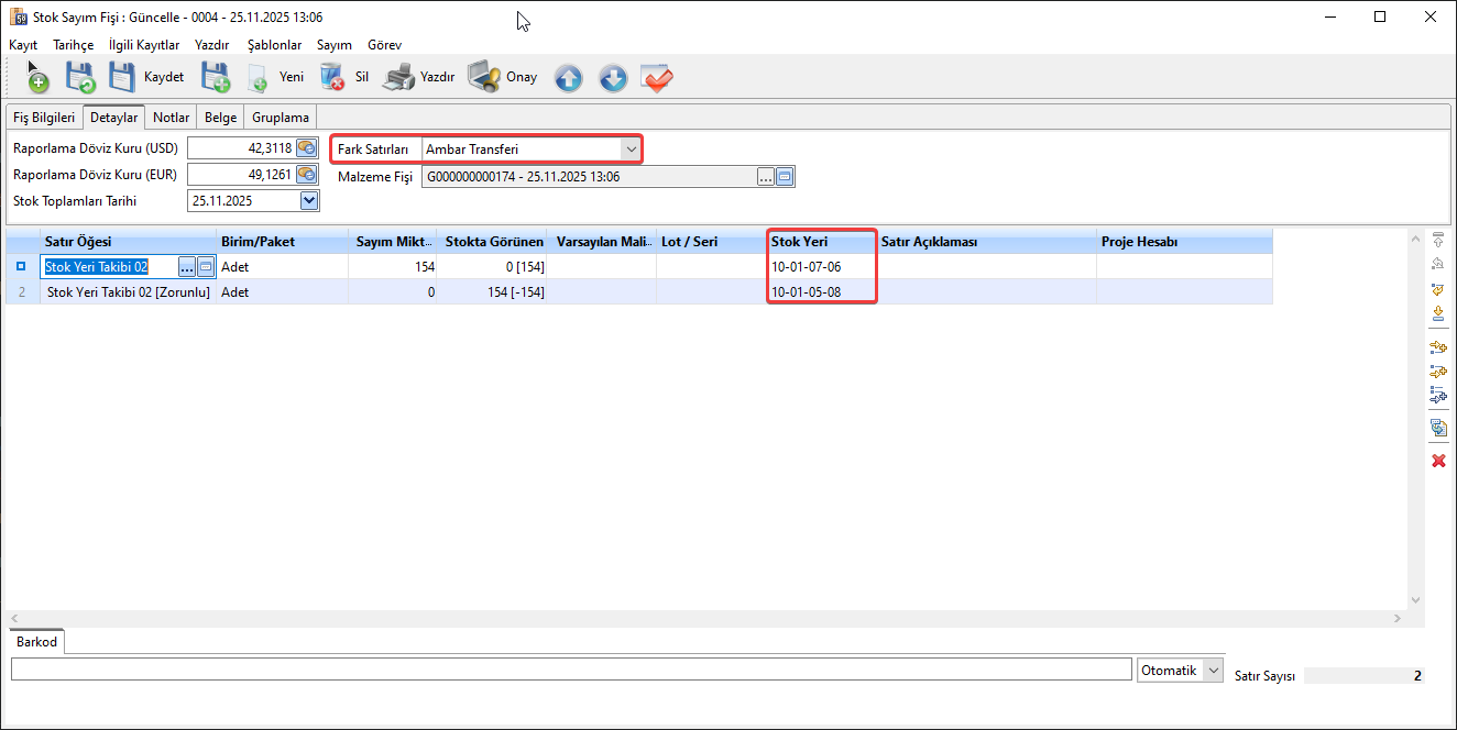 Fark Satırı Ambar Transferi Seçildiğinde Yapılması Gerekilenler