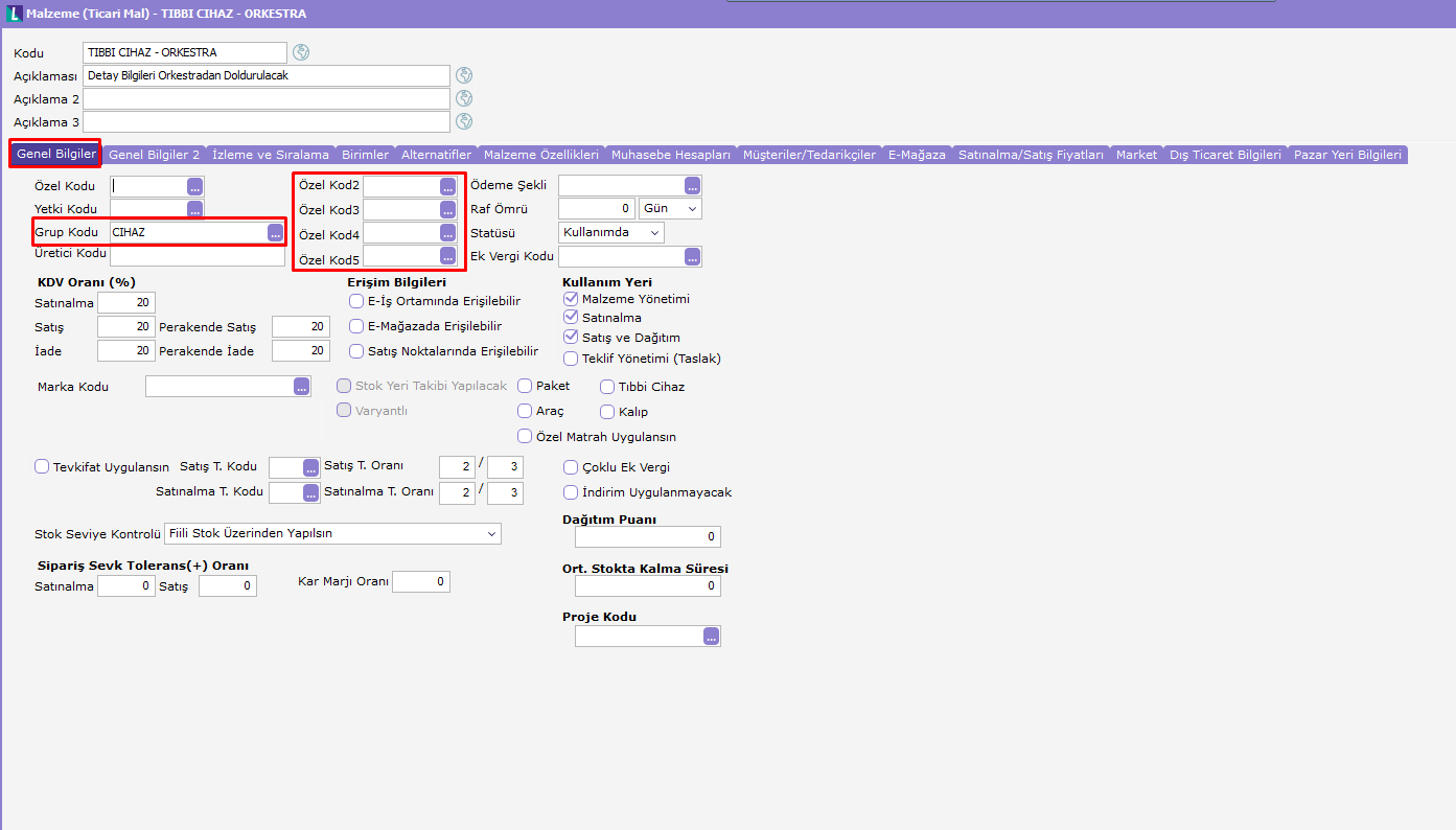 Logo Muhasebe Programında Tıbbi Cihaz / İlaç Özelliği Olmayan Firmalar İçin Orkestra ve Logo Üzerinden Yapılacak İşlemler