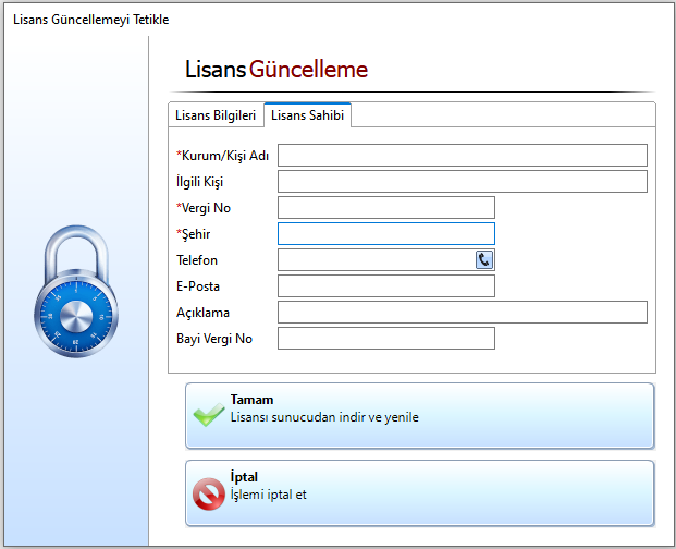 Yeni bir demo lisans oluşturmak için Lisans Sahibi sekmesinde yer alan zorunlu alanları doldurmanız gerekmektedir.