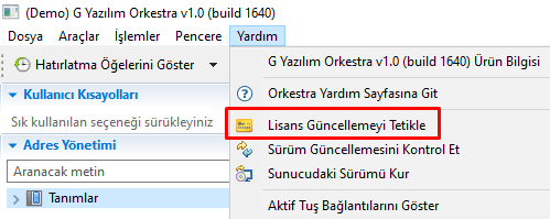 Alternatif olarak, Yardım sekmesinde yer alan “Lisans Güncellemeyi Tetikle” seçeneğini kullanarak da mevcut lisans bilgilerinize erişebilir ve lisans yenileme işlemini gerçekleştirebilirsiniz.